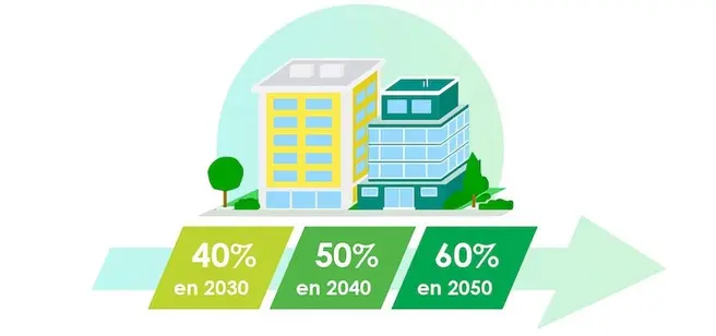 Issu de la loi Elan, le décret tertiaire vise à accélérer la réduction des consommations d’énergie dans le secteur tertiaire (qui regroupe l’ensemble des activités de services, c’est-à-dire qui ne produisent pas de biens matériels mais fournissent des prestations aux entreprises ou aux particuliers), responsable de près d’un tiers de la consommation finale française. Son principe est simple : chaque propriétaire ou exploitant de bâtiment de ce secteur doit mesurer, puis réduire ses consommations d’énergie, selon deux options. La première consiste à baisser de 40% sa consommation par rapport à une année de référence comprise entre 2010 et 2019. La seconde fixe un seuil maximal à ne pas dépasser, exprimé en kWh/m²/an, selon la typologie du bâtiment.